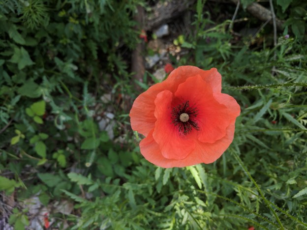 We take a few shortcuts across the fields (some work out, others not so well). The latter half of the morning however, is winding down the last 600 m in altitude along the main asphalt road into town. No chance of shortcuts here. Red and orange poppies line the gravel shoulders, paper thin. My eyelids shrivel in the heat.
