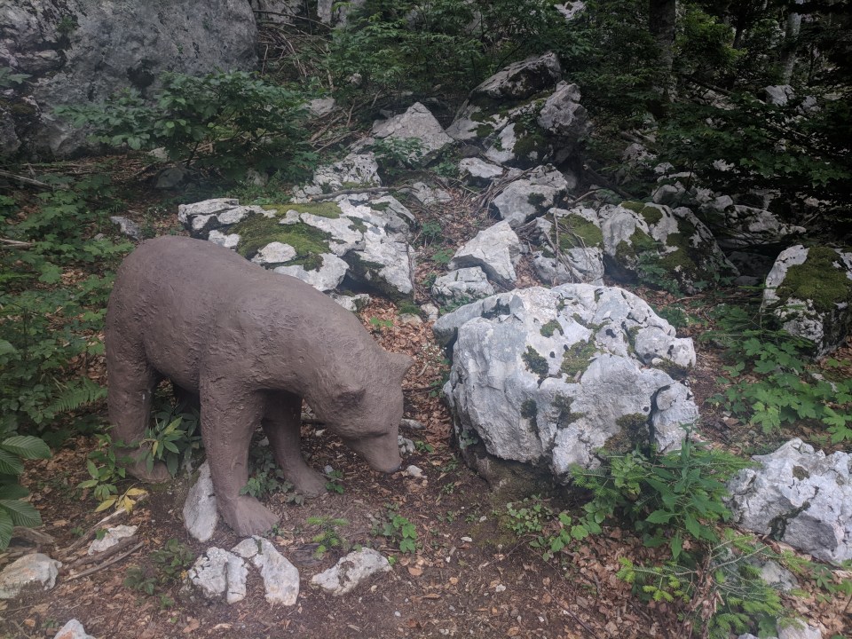 It’s a beautifully made sklonište, with an even more beautiful view. Carved animals and russet red trees dot the perilous limestone cliffs. It’s a dramatic place, and I look forward to hiking through here. Let’s hope it doesn’t storm.
