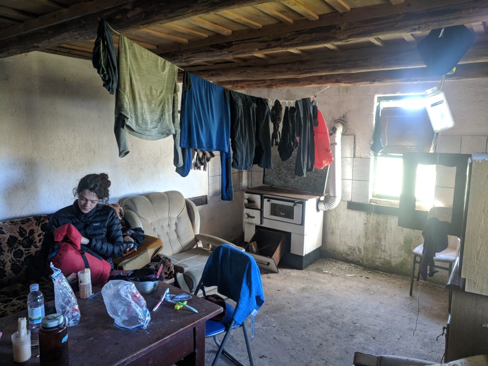 The weather was growing ever worse, so we huddled inside the cottage to make dinner. Once you got over the broken furniture, it was quite comfy and surprisingly clean. In fact it was so nice that we’re still here, and the wind outside is starting to howl fiercely (sorry tent). With a chair propped to keep the door closed, it’s certainly much visit in here. It might be hard to leave this cottage.