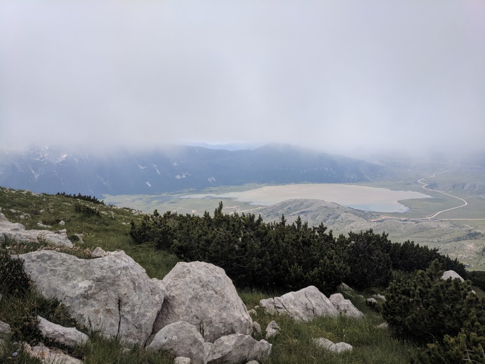 The view from Vran shows the official Via Dinarica route down towards Blidinje jezero in the distance. We’ll continue along the ridge to summit Veliki Vran before heading down a different route.