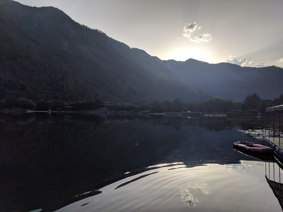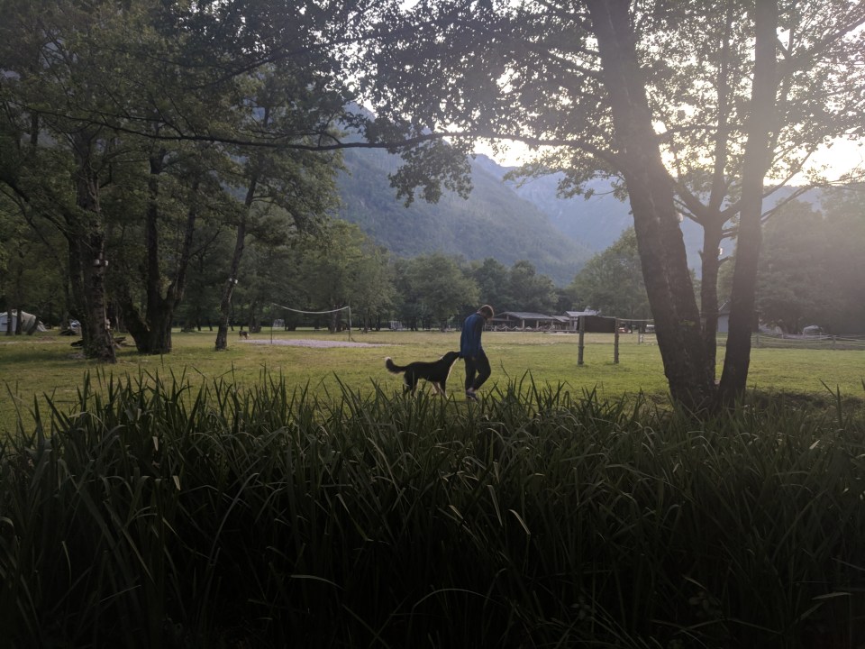 Our plan was to wild camp, but this is way too built up, so we go to one of the real (paid) campsites instead. We’re just setting up Terrence the tent in a lovely spot by the lake when a dog lumbers over, the same size and colouring as a small cow. Unfortunately, not the temperament. Azuz, as we come to call him, is the most annoying dog I’ve met in a long time. He playfully bites anything that moves, including our hands, feet, tent, clothes line… It never seems to stop. He also had no discernible owner, and the only way I can get rid of him is by having him follow me to get other side of the campsite (being bitten along the way) and then quickly hiding when he goes off to sniff something. Oh Azuz.