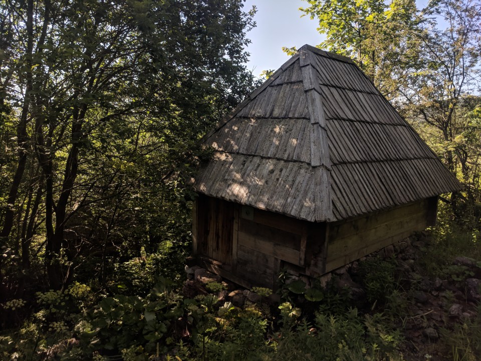 The road down towards Vodenice was easy and well trodden, and we made quick progress to find old watermills that had been converted into an emergency shelter. Usually the words “emergency shelter” mean an adorable little mountain hut, but here I’d say they were pretty accurate: while the stream was nice, the mills were literally just boxes with a door and no windows. If we wanted to keep the mozzies out, the light had to go too. Basic, but good enough for us.
