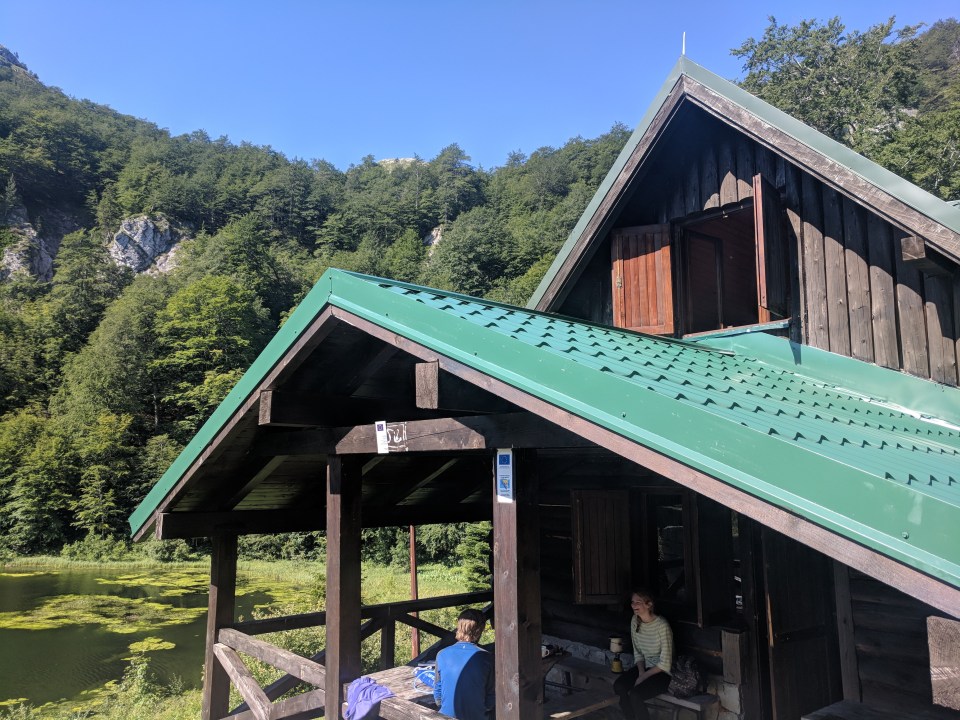 From Gornje Bare jezero, we walk a few quick kilometres along leafy roads to Donje Bare jezero (Gornje meaning ‘upper’ and Donje meaning ‘lower’; I don’t quite know what Bare means, so we’ll have to leave it at that). At the lake is a beautiful kuća. It happens that a group of four friends from near Sarajevo are staying there for a few days. A woman with clear, olive skin and hair died a lovely pale-orangish blonde fills our water bottles and offers us Bosnian coffee. We relax in the shade on the veranda, overlooking the deep green lake with the strong, silty coffee. “We are a poor country,” she says wryly, “But people always have enough money for a drink, a coffee, a smoke.” In a way, it sounds like a very nice way to live.