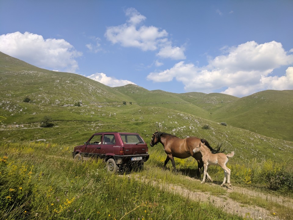 This wasn’t the only way the locals expressed their friendliness. Heading down a particularly dusty patch of road, our eye was caught by what looked like a broken down car – parked on the side of the road, hood open with a couple of men wandering about. One of the men came towards us, shirt open to the belly button and speaking in rapid Montenegrin. I thought he was asking us for help, but once he realised we didn’t understand him, his whole demeanor changed. We found ourselves shaking his hands and being passed swigs of some sort of drink he was carrying with him. No refusals allowed.