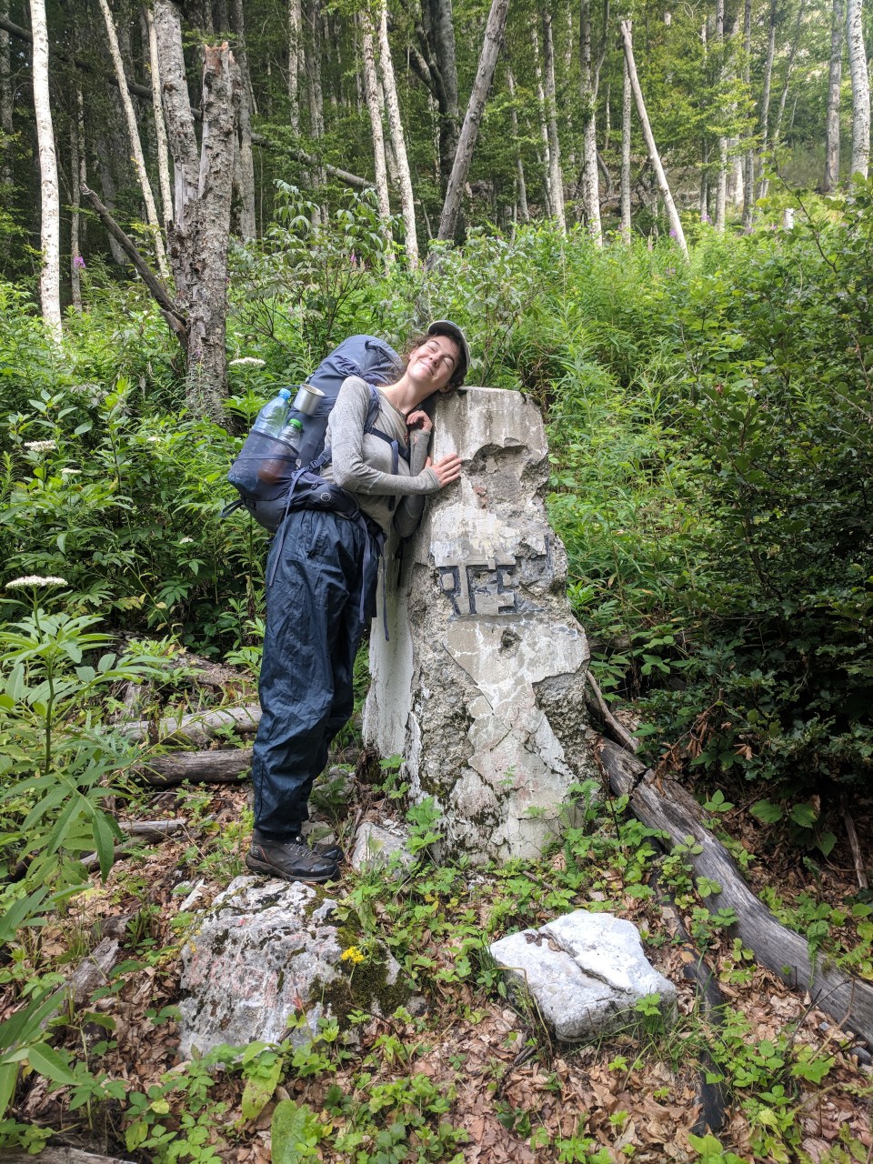 We pack up quickly and head up into a trackless gully towards the border. I feel a little guilty as we try to disappear inconspicuously into the trees. This is technically an illegal crossing, but the only way we could sensibly wrangle our route. Tomorrow we’ll sneak back into Montenegro, ready to do our pre-arranged, legal crossing near a little town called Vusange. We’ve decided our consciences can take the 24 hour discretion. But there’s no turning back now anyway. A concrete marker suddenly looms and oops, we’re in Albania.