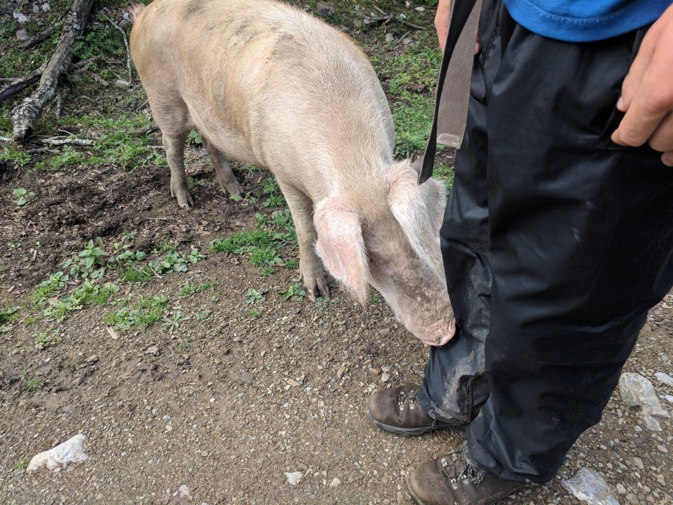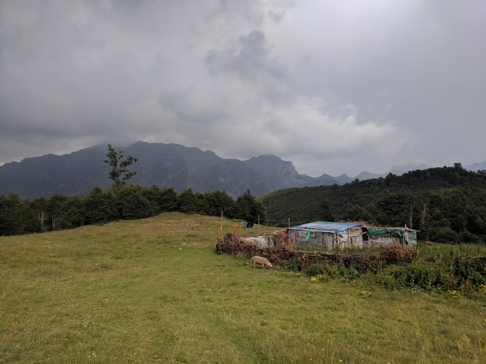 The house of the Albanian woman. We tried to exchange names, and I think hers was Regina. Note the pigs outside – five piglets come up and simultaneously give me a snuffle as we leave and I die a little of happiness.