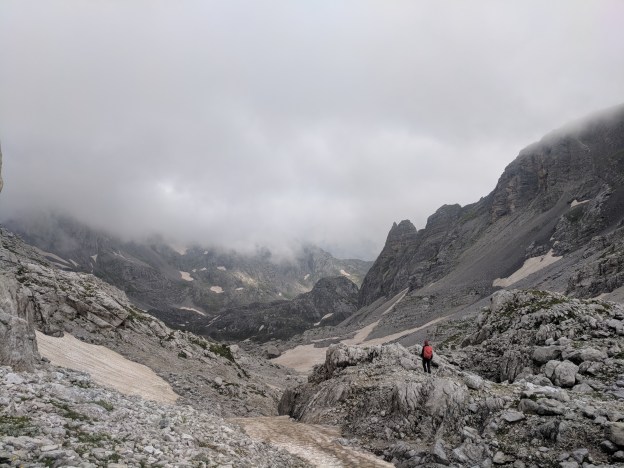 We’re two days out from the finish line in Valbonë, but there’s still one lumpy obstacle between us and it: Maja e Jezercës, the biggest, baddest mountain on the Via Dinarica. At 2694 m, not only is it taller than anything we’ve climbed so far, but it’s also more difficult, typically requiring crampons and ice picks to summit – or so we’ve been told. We have none of those things, but, just maybe, if we leave early and get some good weather, we might fluke our way to the top. That’s the plan, anyway.