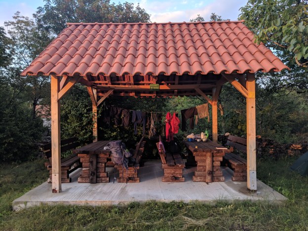 Even though you’d like nothing more than to lie down on the nearest patch of ground – and all ground is comfortable at this point – you’re at an intersection and you have a decision to make. To your right is a five kilometre ascent to a mountain shelter of unknown quality. From there you could summit the mountain of Crnopac tomorrow, before heading back down to the town of Gračac. This is the plan, but there’s thunderstorms forecast (it’s already raining) and Crnopac is too dangerous to climb in bad weather. So instead you could turn left for a five kilometre descent straight into Gračac and the bed that’s waiting for you there.
